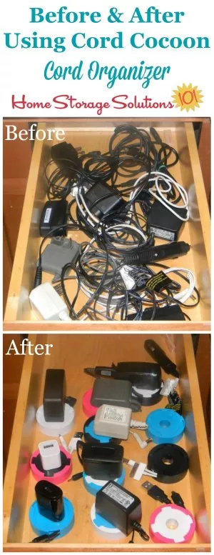 {Click here to purchase on Amazon}If you want to both control the length of cable or cord being used for a device, at the same time that you keep the cords from getting tangled in a drawer or similar storage space, you might want to consider a product that keeps the wires completely contained, such as the Cord Cocoon.