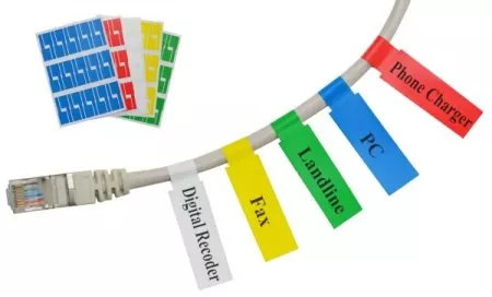 These labels clip onto the cords or wires, and have both preprinted and blank sides that you can fill out yourself to label the cords so you don't get confused about which cable is which.