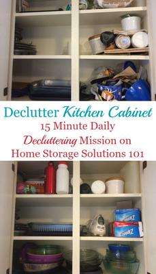 Once you do several 15 minute decluttering sessions you may just be surprised how much space you clear from your kitchen cabinets.
