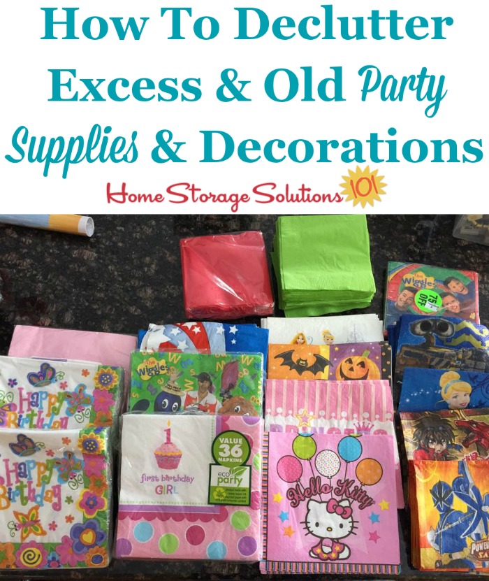 Only know what you've got, and it may be unique to you, so just make sure you only keep those party supplies and decorations that you fully expect to use within the next few months to a year or two. If you don't plan to use it within that time frame, it's time to let it go today.